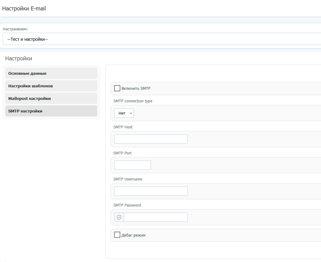 This tab contains SMTP settings.