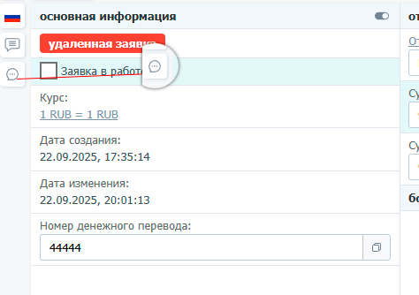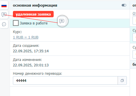 При активации, в разделе "Заявки", возле каждой заявки, появляется 2 значка:
