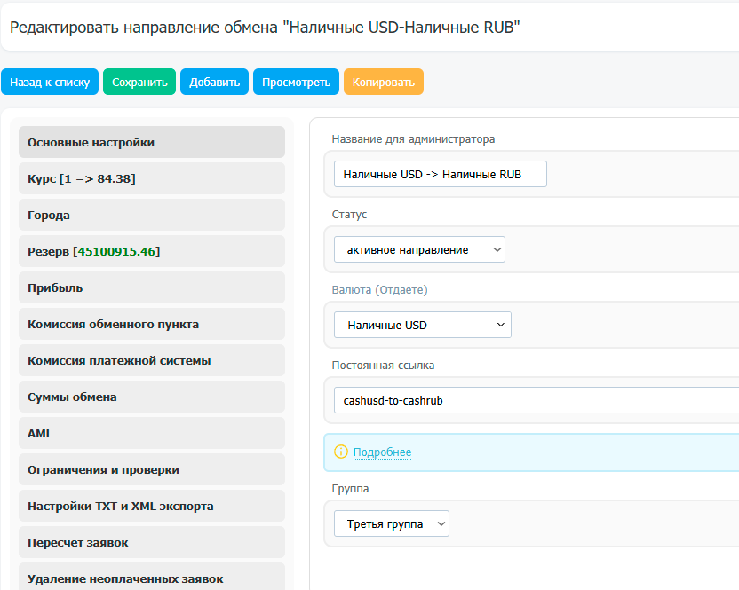 Чтобы отключить проверку номера телефона у конкретного направления обмена, необходимо зайти в него из админки: