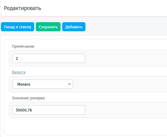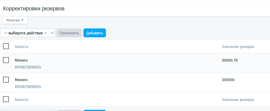 Плагин позволяет создавать ручные корректировки для резервов валют.