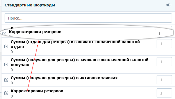 В то же самое время, корректировки можно использовать просто как шорткод. В окошке выбора шорткодов выбрать "корректировки резервов"