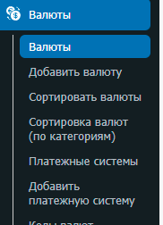 Валюта - это основной элемент на сайте. Именно из валют состоят направления обменов. В то же время, валюта состоит из платежной системы и кода валюты.