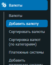 Отображаемое на сайте название валюты. Это поле автоматическое, если не задать значение, оно будет состоять из пары Платежная система + Код валюты.