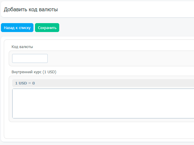 Поэтому в поле внутренний курс - мы задаём значение текущего кода валюты за 1 доллар. Иными словами, сколько нужно отдать данного кода валюты, чтобы получить ровно один доллар.