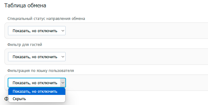 в котором с помощью чекбоксов вы выбираете языки, для которых данное направление обмена будет недоступно.