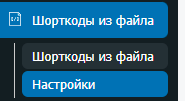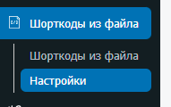 После активации плагина, в административной панели, появляется раздел "Шорткоды из файла"