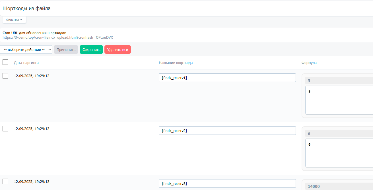 Шорткоды из файла, работают по крон-заданию. После того, как шорткоды были получены из файла, их можно использовать в любом поле калькултора с шорткодами на сайте.