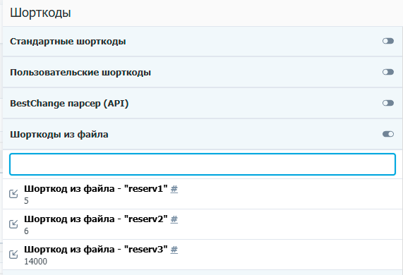 в этом разделе находятся все шорткоды, которые были получены из файлы и доступны для использования