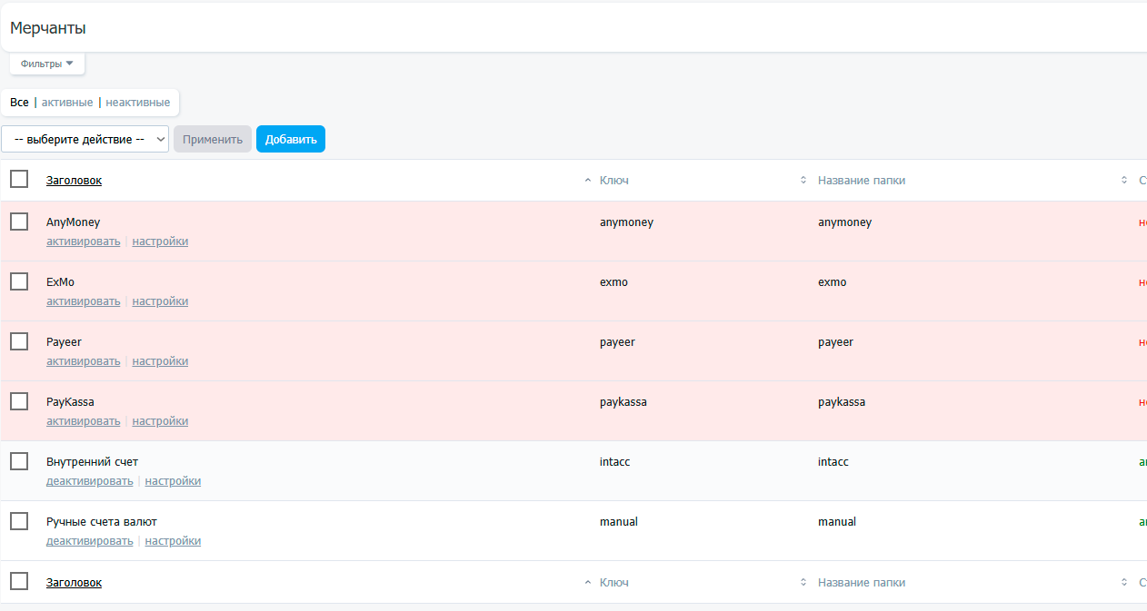 В разделе "Платежные модули" - "Мерчанты" доступны все созданные вами мерчанты.