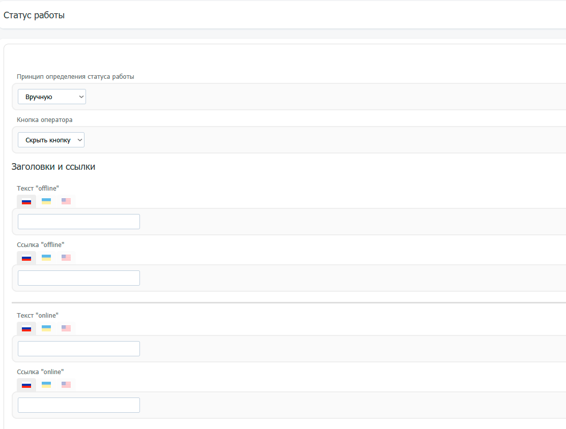 "Автоматически" - в этом выборе, мы смотрим на дату нахождения администратора в админ-панели автоматически. Если в админ-панели никого нет, оператор - оффлайн.