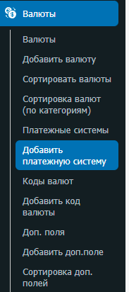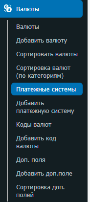 Все платежные системы, в виде списка, находятся в разделе "Валюты" - "Платежные системы"
